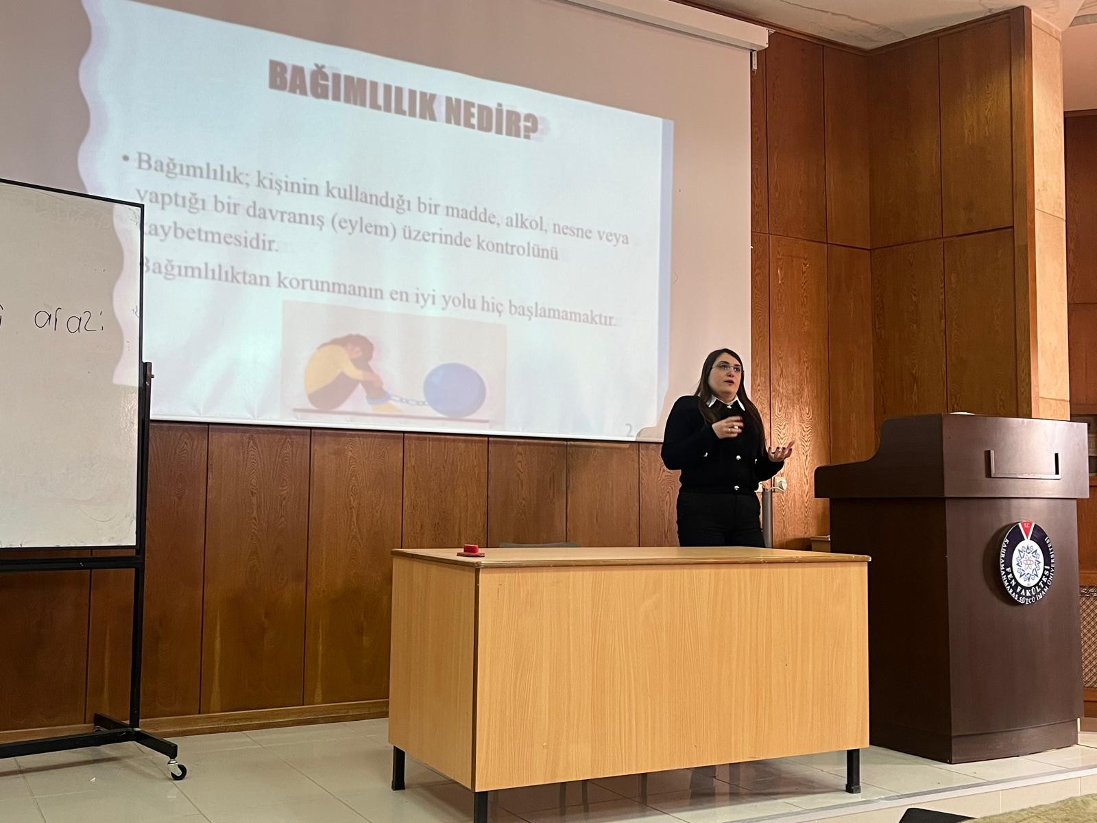 Bölüm Başkanımız Derya Karataş 16.12.2025 tarihinde Fakültemiz öğrencilerine Bağımlılıkla Mücadele konulu oryantasyon eğitimi vermiştir.